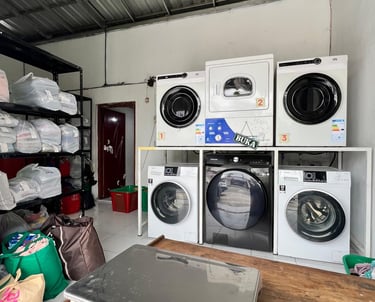 Difasilitasi mesin pengering sekala industri, proses pencucian lebih cepat hingga 2 jam, dengan hasil cucian bersih, higienis dan berkualitas tinggi
