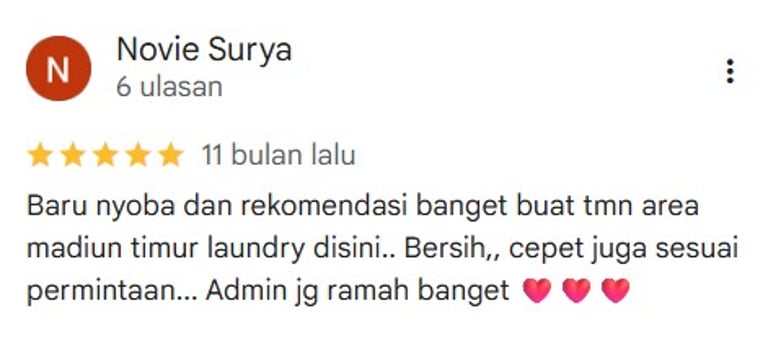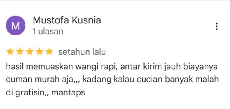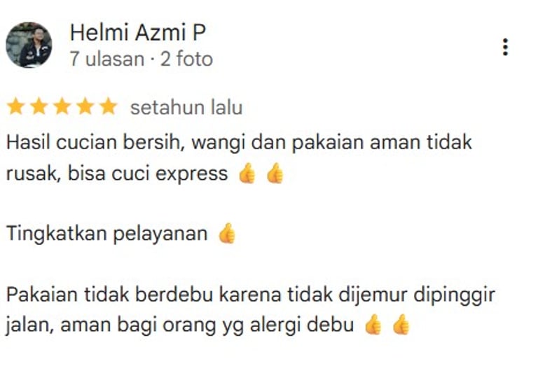Dipercaya pelanggan dengan rating tertinggi, kami menghadirkan pelayanan cepat, bersih, dan profesional untuk menjaga kualitas pakaian Anda setiap hari.